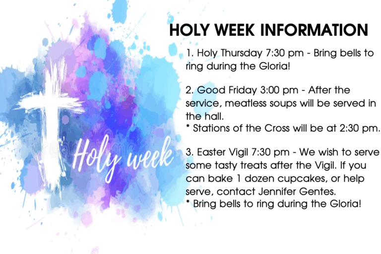 Weekly Mass: Tues-Fri 9:00 am unless otherwise noted in the bulletin
